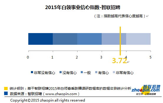 2015白领事业信心指数达到3.72;但事业单位白领信心最低,为3.63