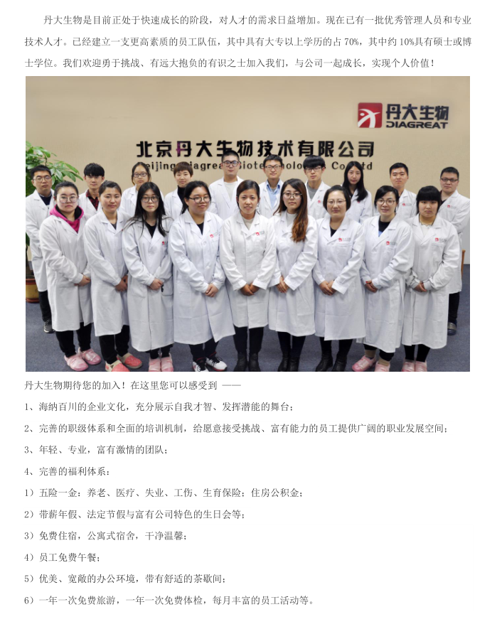 【招聘信息】北京丹大生物技术有限公司2018招聘