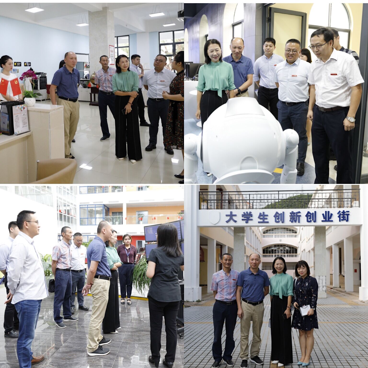 党委副书记、学务长沈建勇对海南省人力资源开发局局长赵微一行表示热烈的欢迎,随后陪同实地考察参观了我校教师会客厅、学生中心、酒店管理实验教学示范中心、盛宝金融科技实验室、超算中心、大学生创业孵化基地等多个学校就业创业场所及特色重点学科项目建设情况。