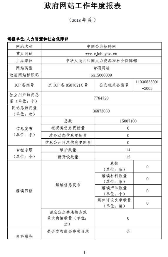 【就业政策】中国公共招聘网年度工作报表