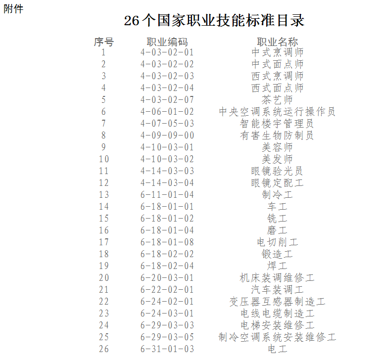 链接:人力资源社会保障部办公厅关于颁布中式烹调师等26个国家职业技能标准的通知