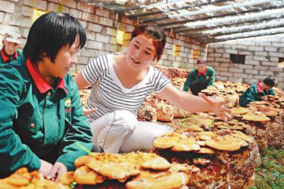 罗婵是陕西省洛南县寺耳镇人。2015年,她创办了洛南县阳光美农食药用菌农民专业合作社,发展食药用菌产业。 截至目前, 合作社已带动当地300多户贫困户生产食药用菌, 人均年增收6000余元。 图为近日, 罗婵 (左二)在食用菌种植基地给工人讲解灵芝生长规律。
