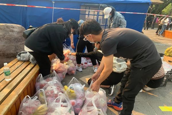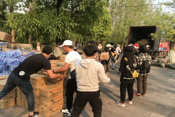 据彭滟洪同学描述:每天早晨7点,指挥部都会收到全市群众的捐赠物资,几天下来,指挥部收到上千件矿泉水及功能性饮料、几十万斤水果、几万份干粮等各类物资。作为青年志愿者的工作,就是在现场整理、搬运、分装物资,协助相关工作。
