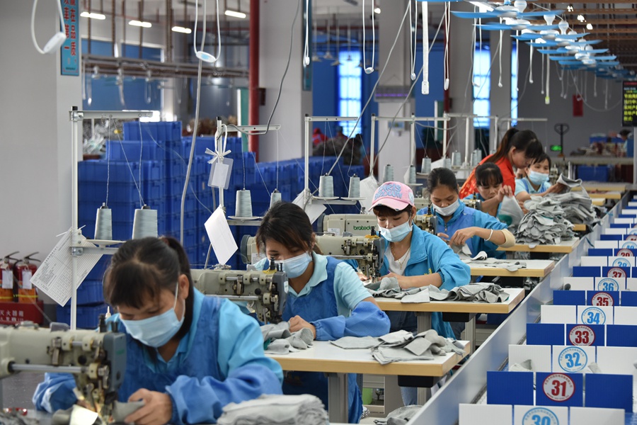 图为宁明县贫困劳动力在广西宁明县铭祥防护制品有限公司的扶贫车间上班。 陆秀明 摄