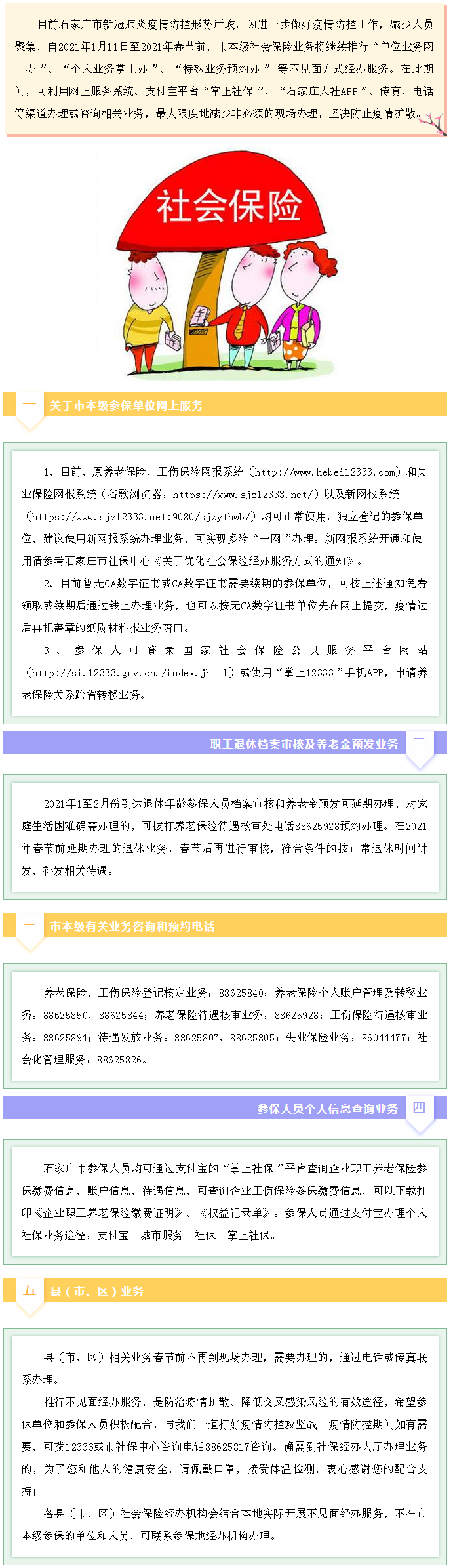 【就业政策】河北石家庄:社保业务不见面经办指南来啦!