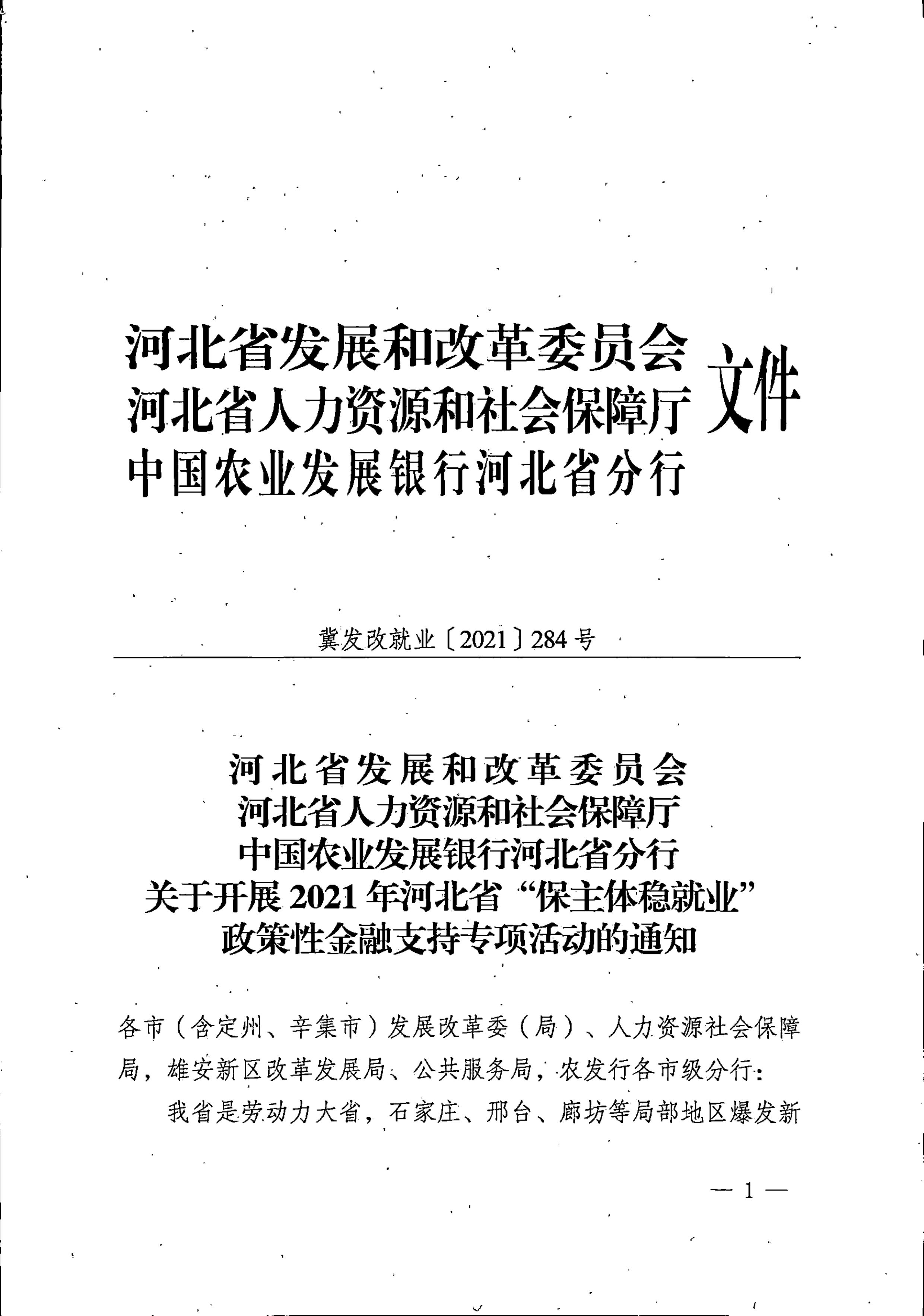 【就业政策】关于开展2021年河北省“保主体稳就业”政策性金融支持专项活动的通知