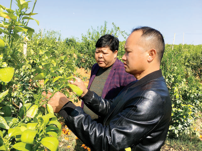 正值春耕时节,湖南省江华县组织科技人才开展“送技下乡”活动,为果农解决急难愁盼问题,服务巩固脱贫攻坚成果与乡村振兴有效衔接。图为近日,中国科学院大学江华博士工作站技术人员在白芒营镇红山万亩水果基地帮助果农进行柑橘病虫害防治。