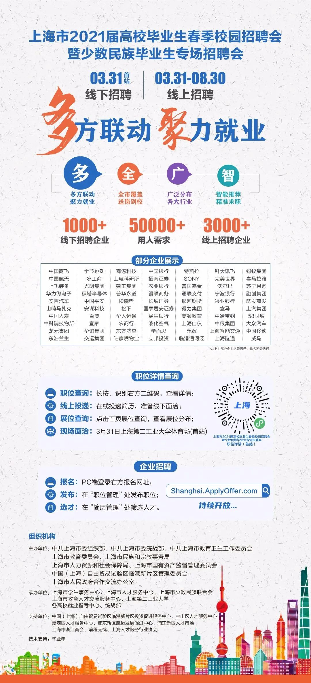 承办单位:上海市学生事务中心、上海市人才服务中心、上海市少数民族联合会、上海市教育人才交流服务中心、上海第二工业大学、各高校就业指导中心、统战部