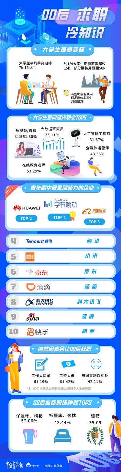 互联网大厂成热门选择,字节跳动、华为、阿里巴巴成00后心动Top3
