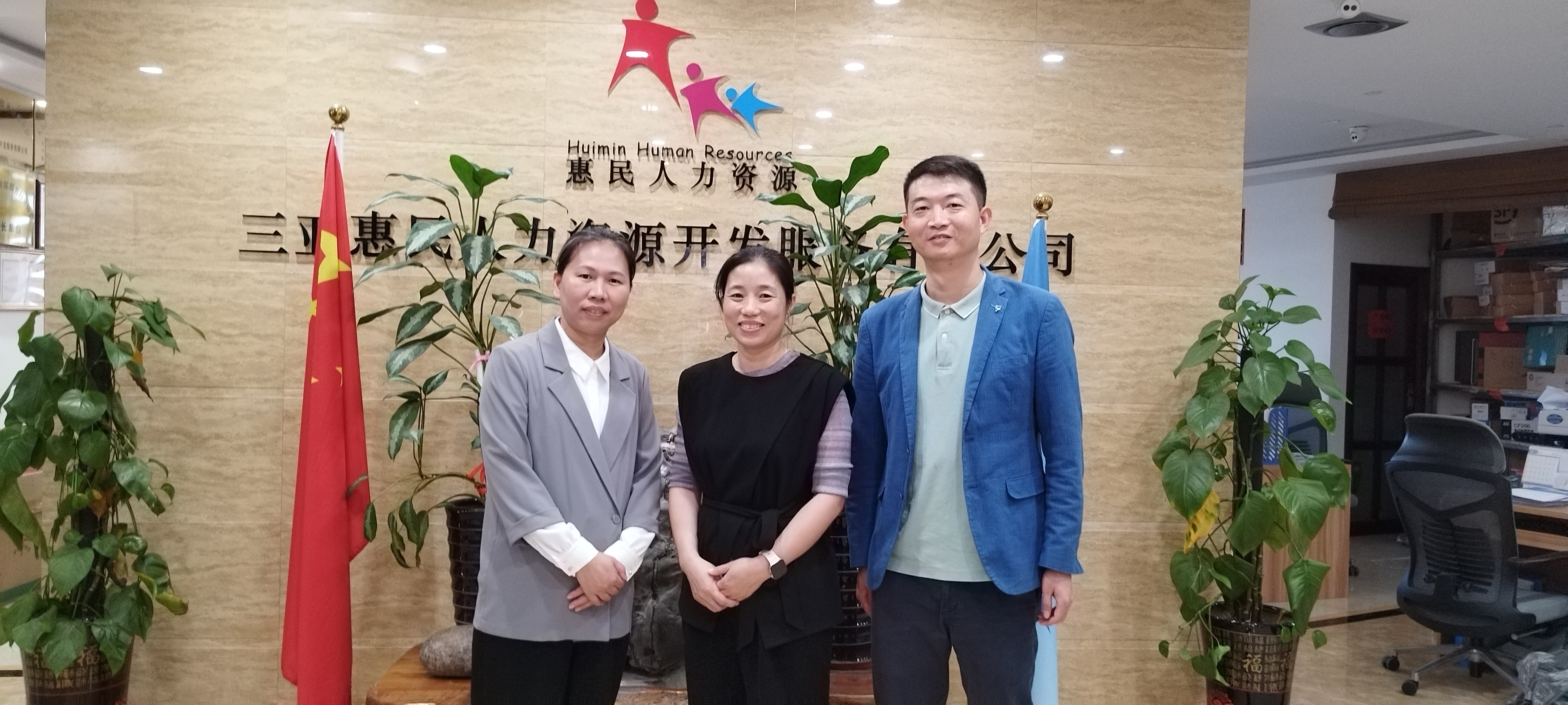 座谈开始前,卜经理带领两位老师参观了三亚惠民公司,并向两位老师简要介绍了公司的发展历程、服务项目、企业资质荣誉、部门设置与职责划分。两位老师高度赞赏了公司取得的成绩和其在三亚人力资源服务领域的影响力。