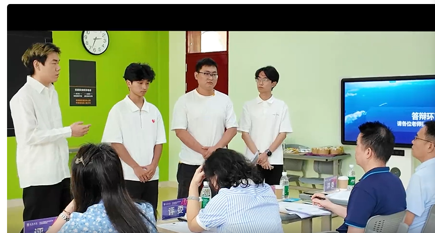 备赛期间,三位导师分工协作:杨老师主抓商业模式与市场推广逻辑,贾老师和孙老师负责技术路线优化与工程参数验证。进入 6 月冲刺阶段,团队又通过线上腾讯会议连续开展 4 轮模拟路演,邀请往届国赛选手线上“压阵”提问,从台风控制到数据呈现逐一打磨。省赛前夕,导师组再次联合企业导师开展云端辅导,确保项目以最佳状态亮相海南大学赛场。