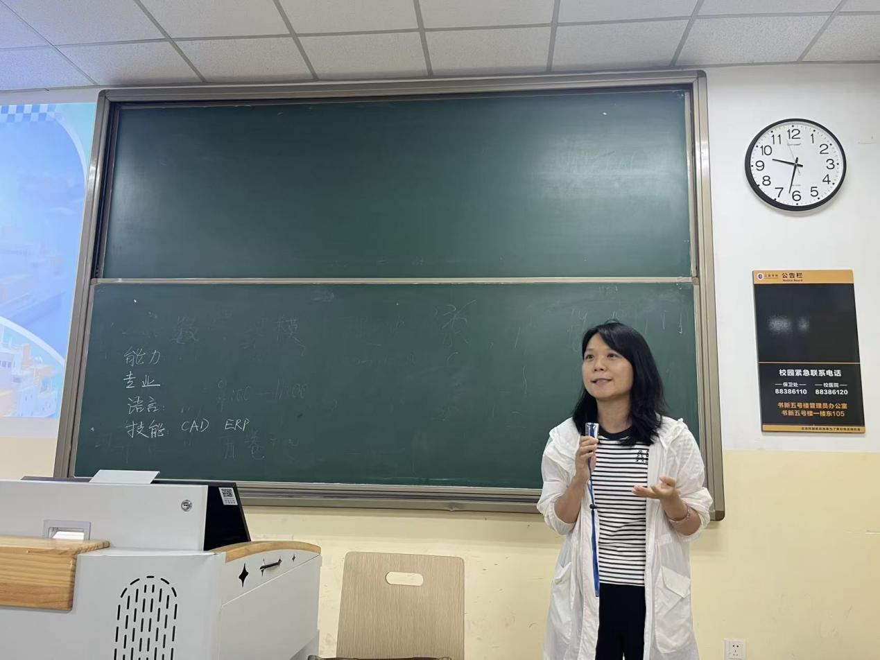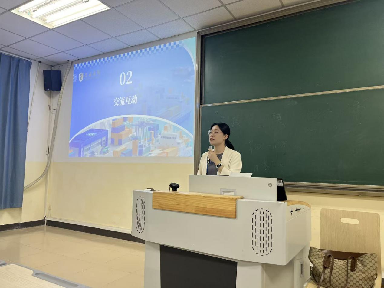王君红老师从专业发展背景与前景出发,向学生们阐述了供应链管理专业的时代价值。她表示,供应链管理作为适应全球贸易发展与产业升级需求的新兴专业,在海南自贸港建设与国家“一带一路”倡议推进的背景下,具有广阔的发展空间。专业通过融入传化供应链产业学院、引入京东物流等企业的实时数据与技术资源,实现了教学场景与产业场景的无缝衔接,能够为学生提供丰富的实践机会,助力大家成长为支持供应链升级的骨干人才。