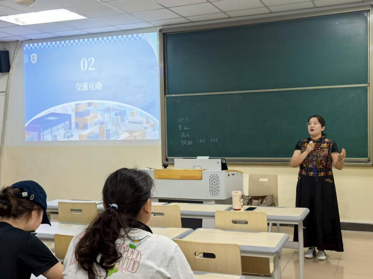 见面会伊始,物流与供应链系副主任卫静静率先发言,围绕专业各核心维度展开全面介绍。她从专业代码120604T切入,详细解读了四年制本科的学制设置与管理学学士的学位授予标准,同时重点强调了专业“智慧供应链与数字贸易协同”的特色定位。卫主任提到,专业始终以市场需求为导向,通过对接国内标准、深化产教融合与服务区域战略,致力于培养具备宽广视野、数字思维与实战能力的高水平复合型人才,为区域贸易流通、港航物流、智能制造领域输送骨干力量,助力海南建设全球供应链服务中心,让在场学生对专业的办学使命与战略价值有了清晰认知。