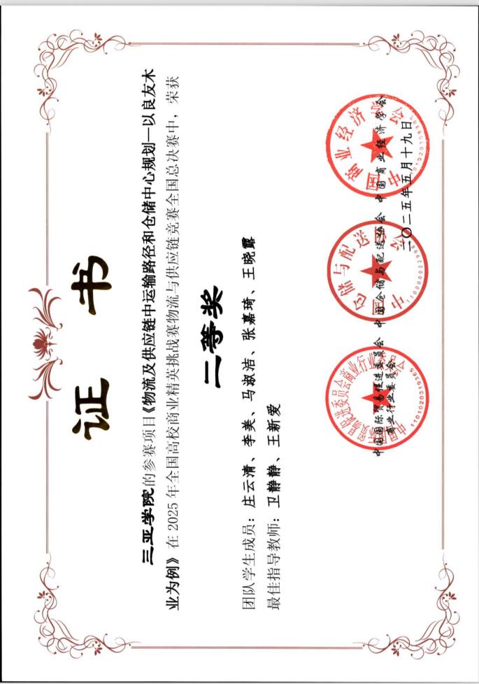 通过一系列精心设计的课程和实践项目,学生们不仅掌握了扎实的专业知识,还培养了团队协作、创新思维和解决实际问题的能力。学院注重学生的实践能力培养,通过实验室教学、企业实训、学科竞赛等方式,使学生能够将所学知识应用于实际工作中。近两年来,学生在全国高校商业精英挑战赛国际贸易竞赛全国总决赛、全国大学生智慧供应链创新创业挑战赛、京东物流杯全国智能供应链大学生竞赛等学科竞赛中,获得多项国家级奖项。