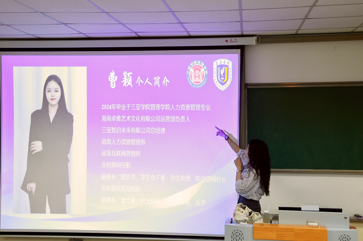 谈及大学能力提升,曹颖鼓励新生积极把握成长机会:“积极参与班委竞选、加入学生组织,让自己得到全方位锻炼。”曹颖学姐在校期间曾担任学生助理、班委、团委学生会干事、三亚学院管理学院职创空间社社长等学生干部职务,她表示,这些校园经历不仅提升了她的沟通协调、组织策划能力,更让她学会了面对困难时的应对方法。