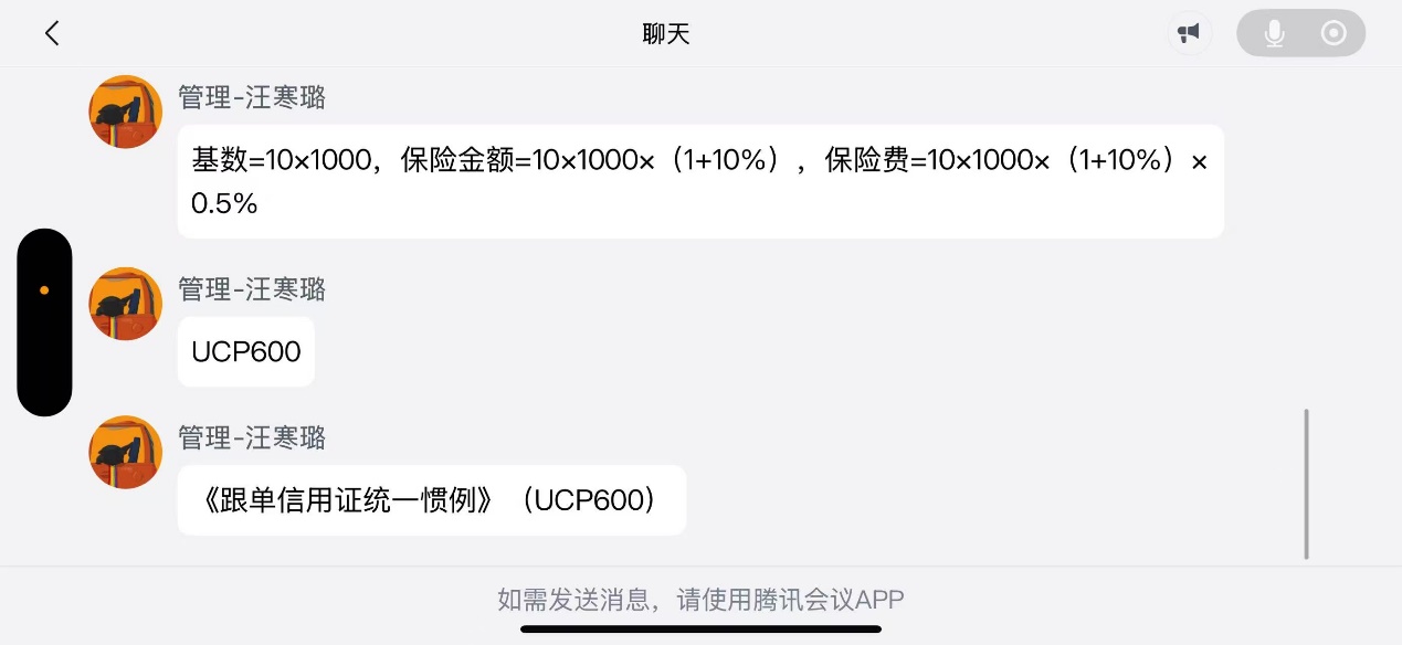 随后,汪寒璐老师围绕具体题目与核心知识点深入授课。她以《跟单信用证统一惯例》为依据,详细拆解基数、保险金额及保险费等关键指标的计算公式。同学们互动热情高涨,在评论区及时提问,汪老师耐心答疑,线上学习氛围浓厚。