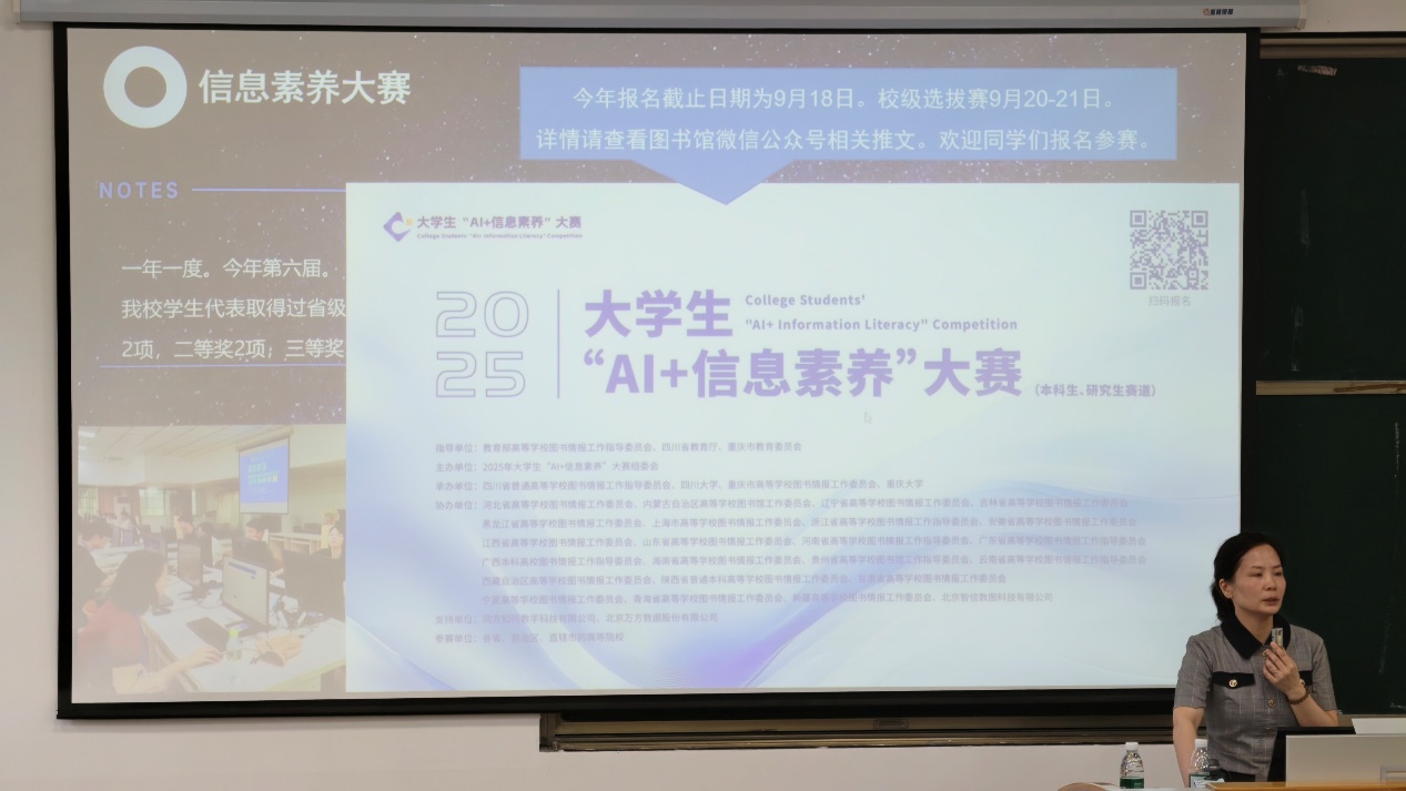 主讲老师重点介绍了“学习通”平台的使用方法。作为集课程学习、资源获取、交流互动于一体的移动学习工具,“学习通”是研究生阶段不可或缺的学术助手。老师现场指导同学们如何通过平台访问图书馆购买的数据库、在线课程等资源。为增加趣味性,课程设置了闯关环节。率先完成资源检索、数据库访问等任务的同学们,获得了图书馆准备的精美文创产品,现场气氛热烈。
