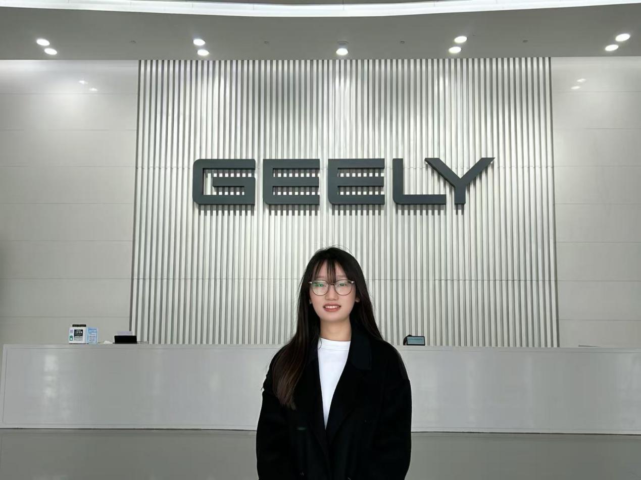 大三暑假,蒋雪韵通过层层面试,成功加入吉利汽车集团公共与政府事务部。在这里,她接触到更广阔的职场天地,参与部门内部运营、品牌建设、宣传管理等核心工作。这段实习经历让她对职场运作有了更深刻地理解,也让她的专业能力在实践中得到进一步打磨。
