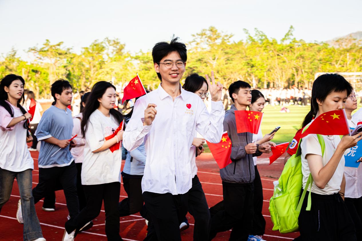 仪式第五项,师生共庆国庆健康跑。随着开跑音乐,老师同学们按照预定的路线绕场奔跑,全场的气氛瞬间变得热烈而充满活力。队伍步伐整齐,脚步声与青春呐喊交织,师生们以昂扬姿态向前奔跑,用蓬勃朝气诠释着新时代管院人的担当,为祖国华诞献上最富活力的青春礼赞。