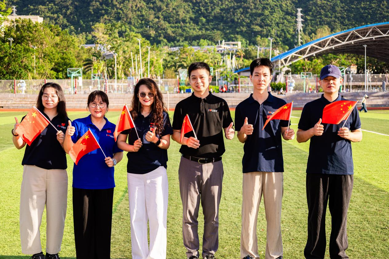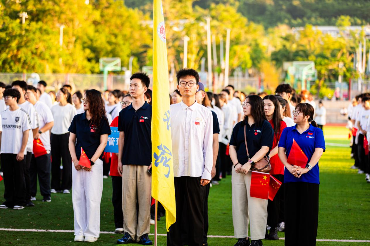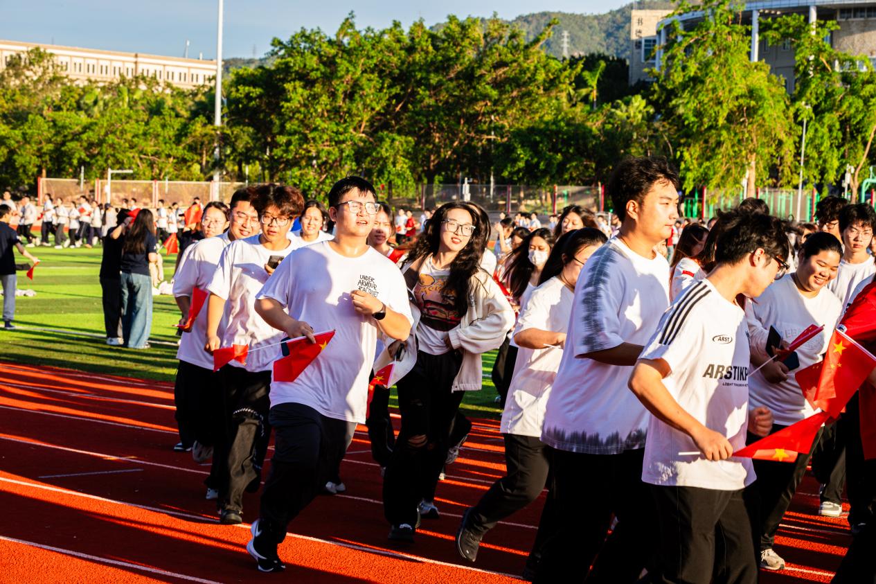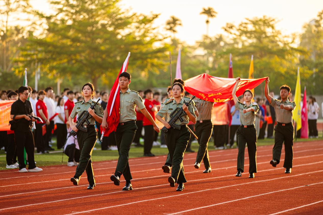10 月 1 日清晨 7 时,三亚学院风雨操场内旌旗飘扬,千余名师生齐聚于此,隆重举行庆祝中华人民共和国成立 76 周年升旗仪式。管理学院师生代表身着整齐服装,与全校师生共同见证这一庄严时刻,抒发爱国情怀。