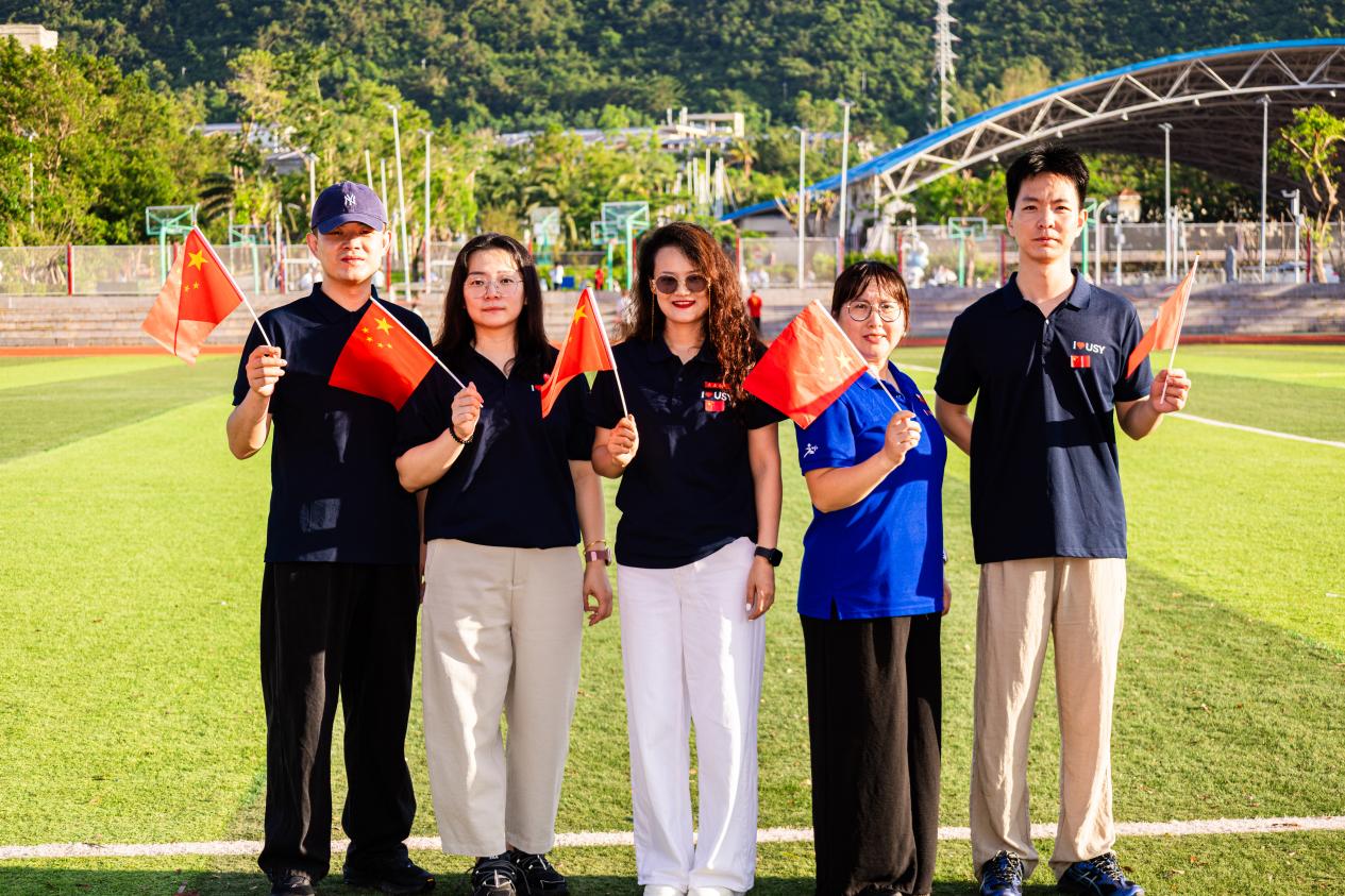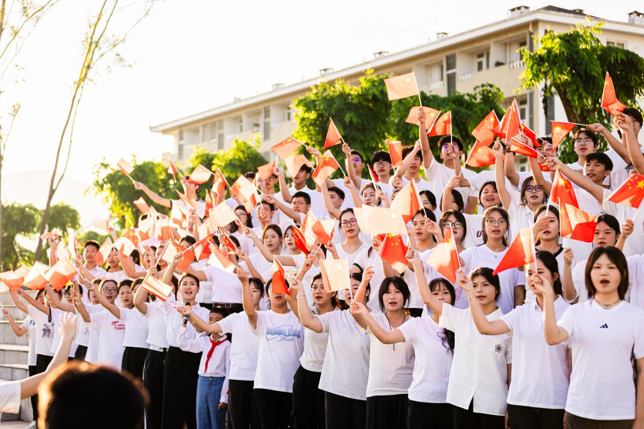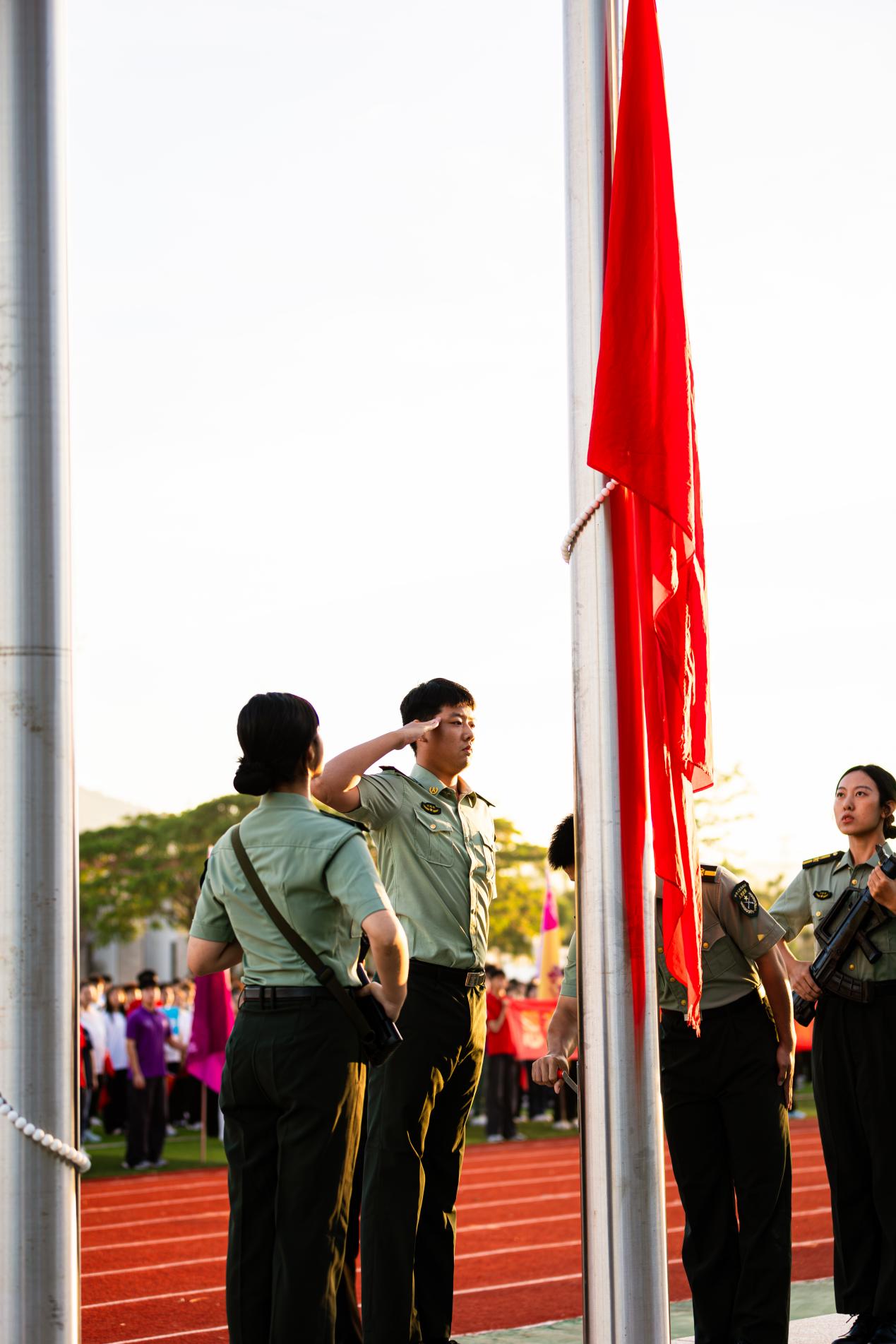 伴随着庄严的国歌,鲜艳的五星红旗冉冉升起,全体师生肃立,行注目礼,表达对祖国的深深敬意和无限热爱。