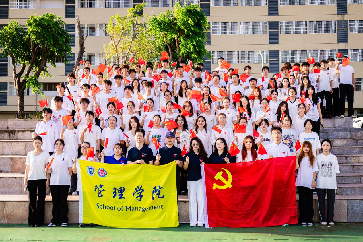青春逐梦迎华诞,砥砺奋进向未来 —— 管理学院师生参加学校举行的建国 76 周年升旗仪式