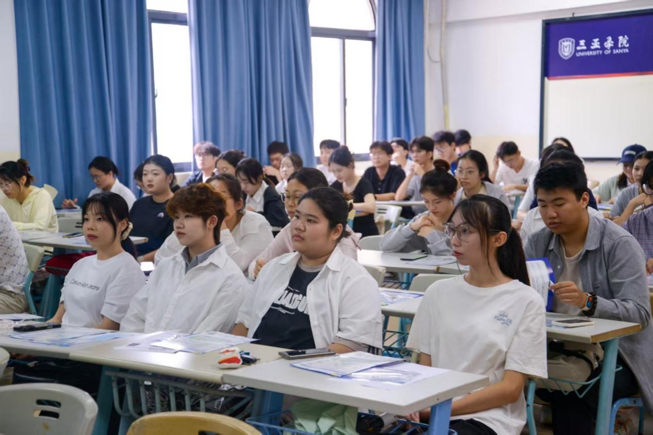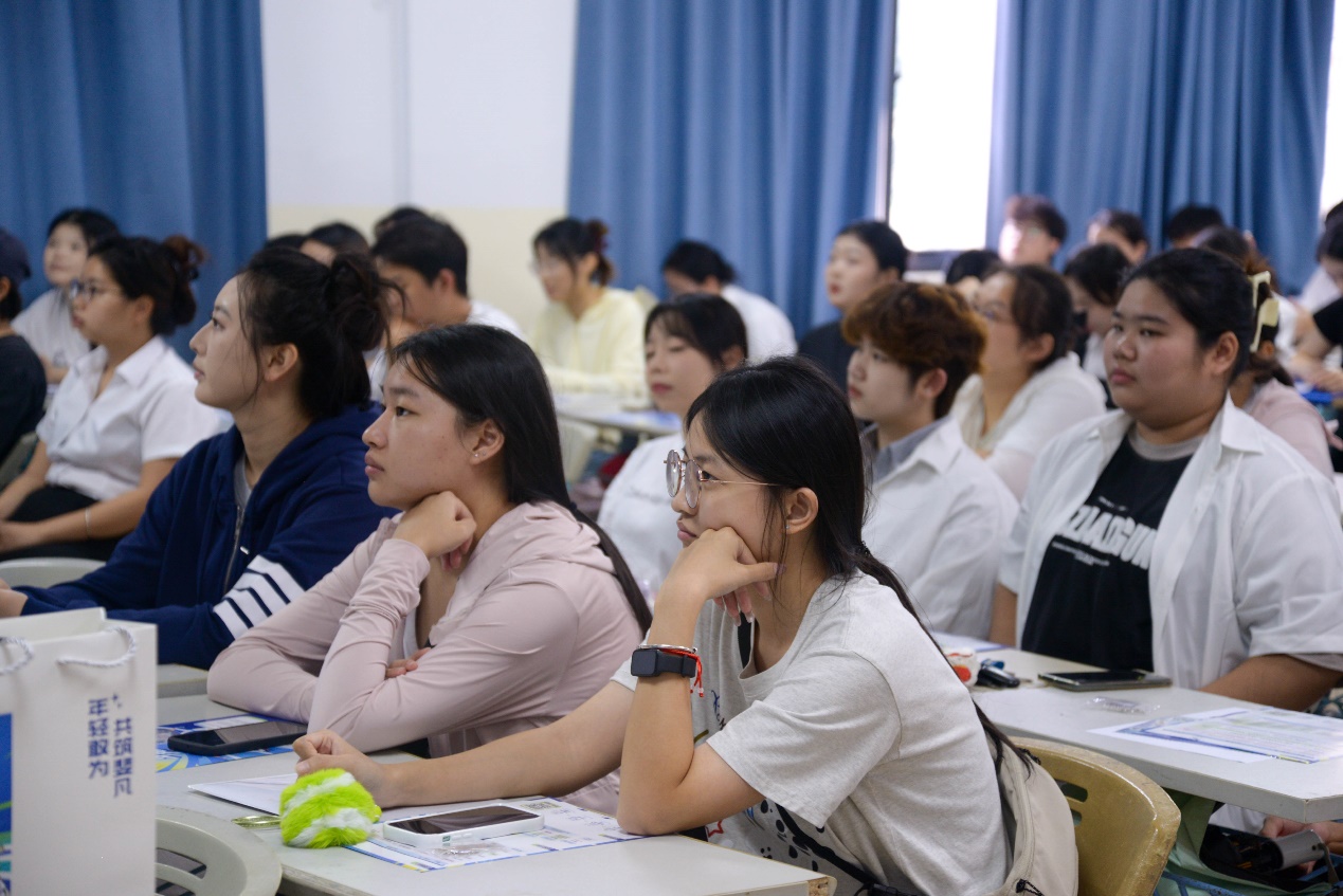 FILA海南办事处负责人李越建先生的分享则为学子打开了行业视野。他从安踏集团“单聚焦、多品牌、全球化”的发展战略切入,追溯FILA自1911年创立以来的百年历程,重点解读品牌“高端运动时尚”的市场定位,以及在海南自贸港政策下的区域业务布局。他表示,海南是FILA华南区域的重点市场,未来3年计划新增若干家门店,急需新鲜血液加入。他用具体数据展现品牌发展潜力,让学子看到清晰的职业成长空间。