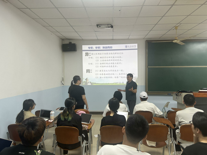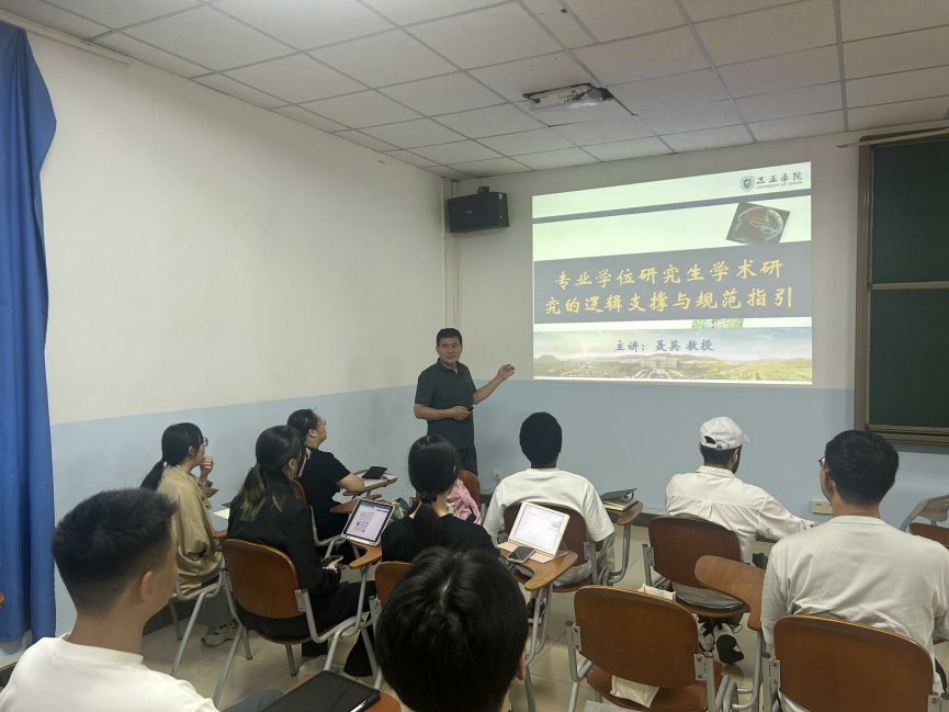 2025年10月21日上午,聂英教授在书新4号楼201为我院研究生举办了题为“专业学位研究生学术研究的逻辑支撑与规范指引”的学术报告会。我院国际商务专业的硕士研究生及部分本科生参加了此次报告会。