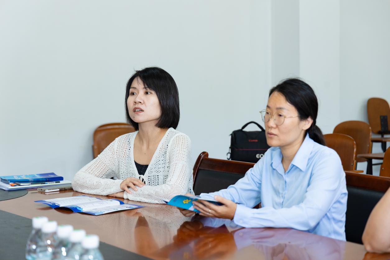 中化六建海南分公司综合管理部主任邱俊晗女士(左)与我院领导老师们交流
