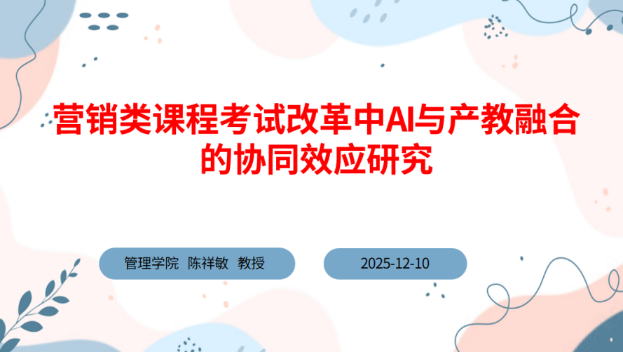 12月10日,三亚学院管理学院陈祥敏教授依托自身项目研究成果,面向工商管理专业高年级学生,开展了题为“营销类课程考试改革中AI与产教融合的协同效应研究”的学术讲座,以前沿视角拆解教育改革痛点,为在场学子带来了一场兼具理论深度与实践价值的知识盛宴,彰显了学院在应用型商科人才培养领域的探索与思考。