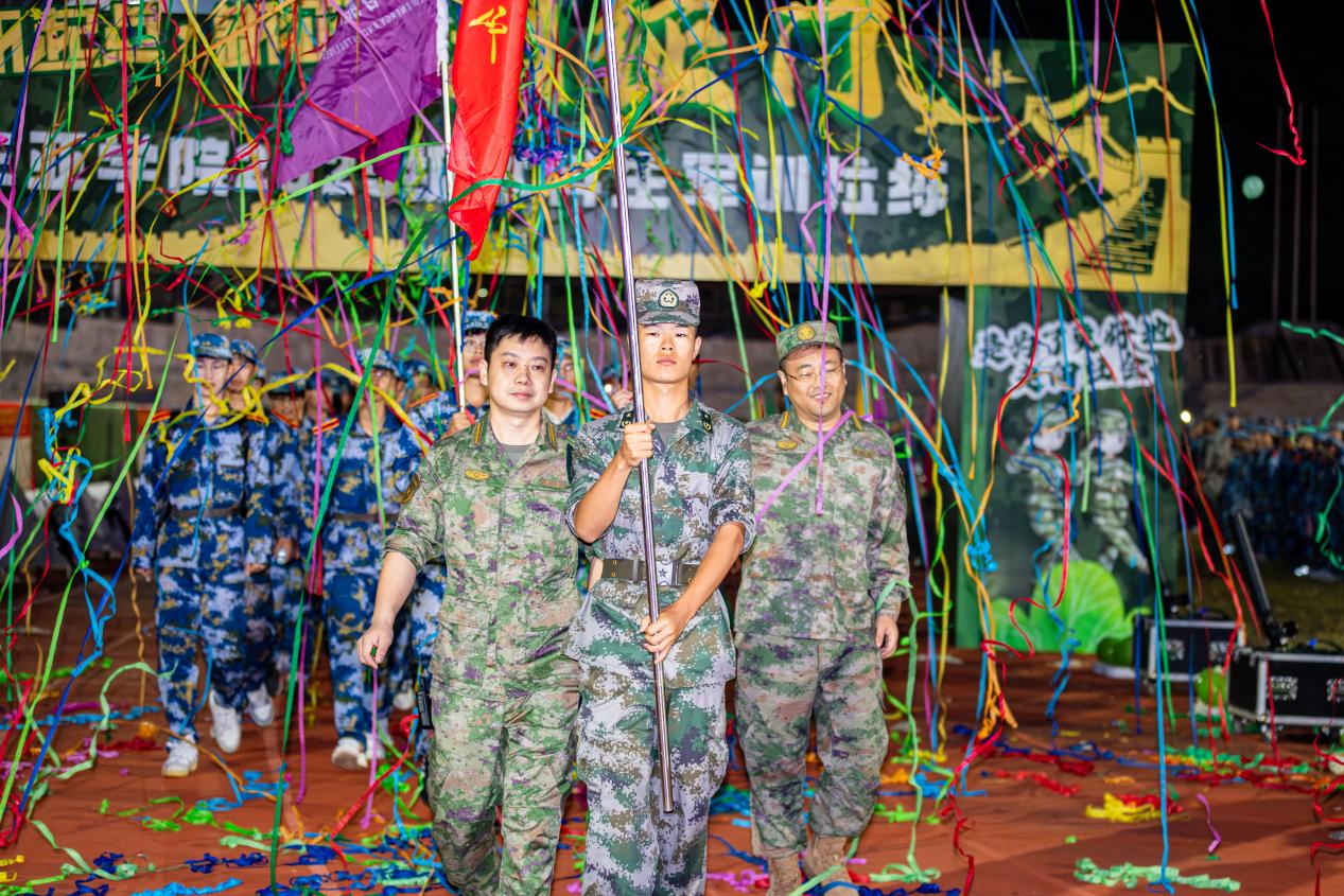 早上7:00,随着集合哨声的响起,新生们身着统一的迷彩服,精神抖擞地列队站在操场上。首先由学生处田希老师开场致辞,他激励同学们要勇于面对挑战,展现三亚学院学子的风采。随后,庄严的国歌声响起,嘹亮的歌声回荡在操场上空,激发了学生们的爱国情怀和集体荣誉感。学生处孙凡处长进行授旗仪式,将代表着荣誉与责任的旗帜交到了教官代表手中。最后,孙凡处长宣布拉练活动正式开始。