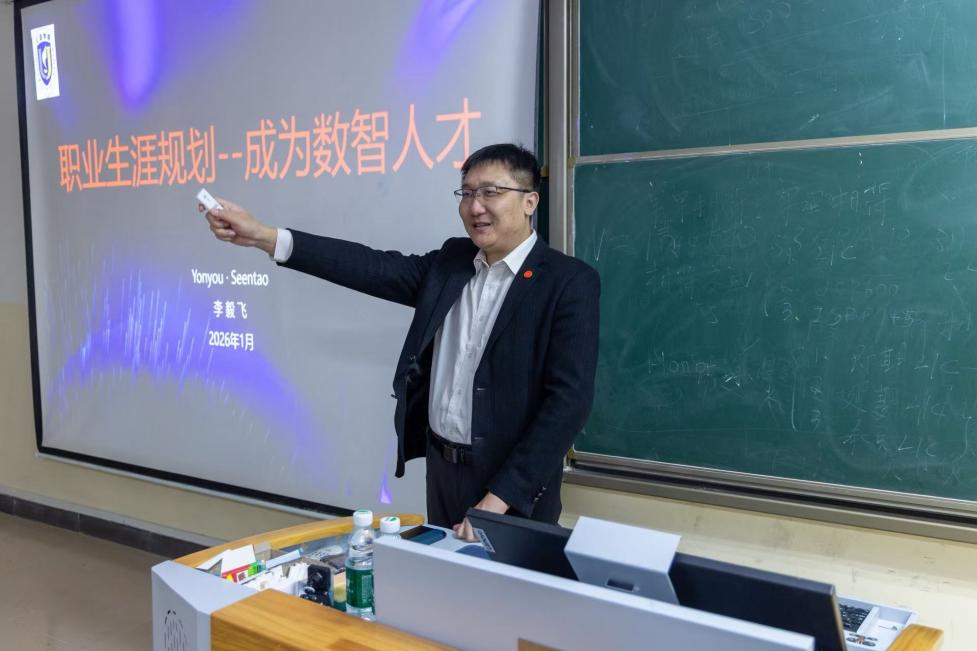 2026年1月5日上午,三亚学院管理学院国际商务研究生产教融合周迎来了首场讲座。此次讲座特邀用友新道海南分公司总经理李毅飞老师主讲;讲座内容基于用友集团和新道科技的丰富经验,结合国家政策与行业数据,旨在帮助在校生在数字经济浪潮中抢占先机。
