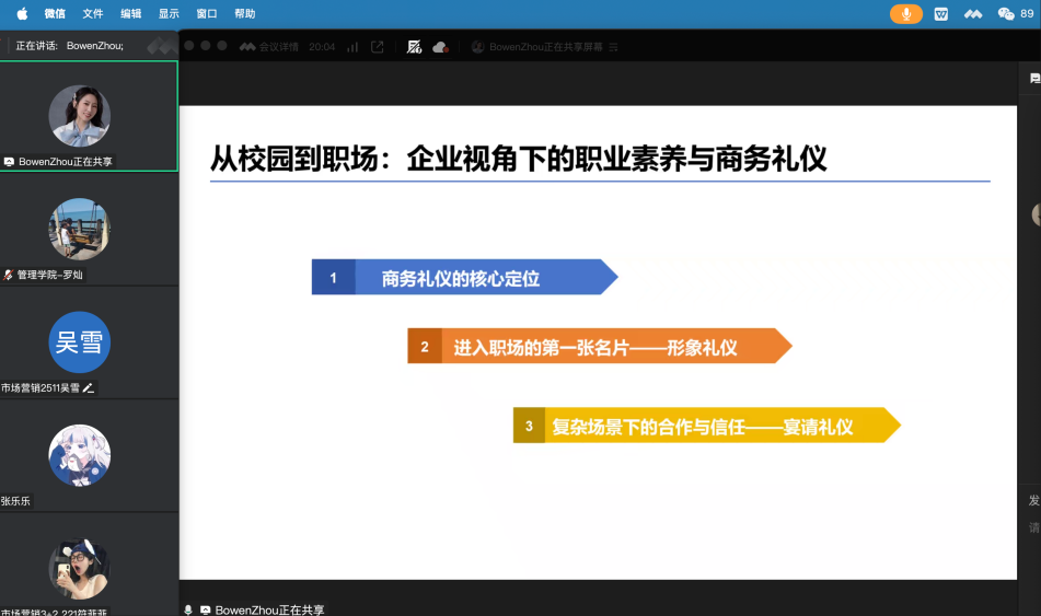 周博闻教授云端开讲 助力大一新生筑梦职场 ——“从校园到职场:企业视角下的职业素养与商务礼仪”线上讲座成功举办