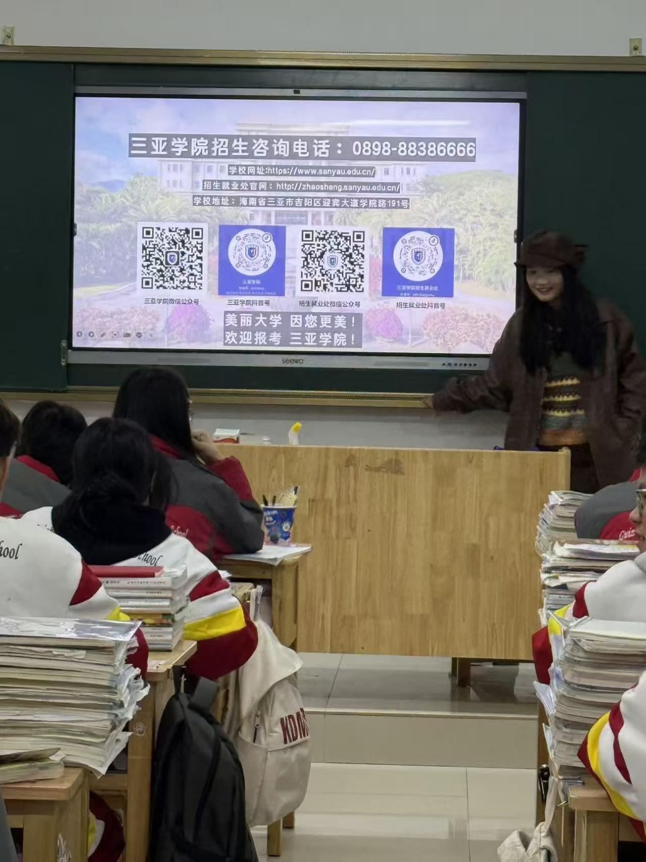 “高三时的我们,总在题海中抬头眺望,好奇大学究竟是什么模样?”向思源同学以共鸣感极强的提问切入,瞬间拉近了与学弟学妹们的距离。她结合自身体验,用生动的讲述勾勒出三亚学院的独特魅力:这里有被热带绿植环绕的诗意校园,白鹭溪穿园而过,书山馆藏书丰富,“立德树人”的育人理念融入每一堂课、每一次活动;这里有“知行合一”的实践平台,管理类专业的学子们深度参与企业合作实训项目,将品牌策划、市场营销等课堂知识转化为实战能力,在实践中学会用知识传递温度、用创意解决问题;这里更有温暖治愈的成长氛围,辅导员深夜送来的感冒药、专业老师牺牲休息时间的耐心指导、竞赛深夜里团队伙伴的并肩作战,让远在他乡的学子倍感安心。